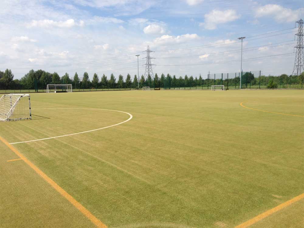 The sand infill is used to support the fibres to within 5-8mm (up to two-thirds the height of the pile) of the tips and it ensures the Synthetic surface has stability. A Sand Dressed Sports Surface has more of the top of the fibres exposed, play takes place on the fibre not on the infill and this improves the play performance of the Synthetic pitch.